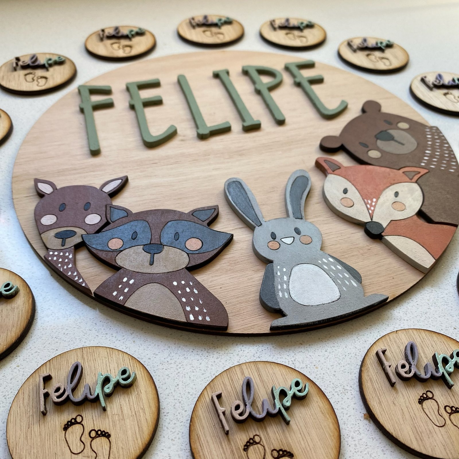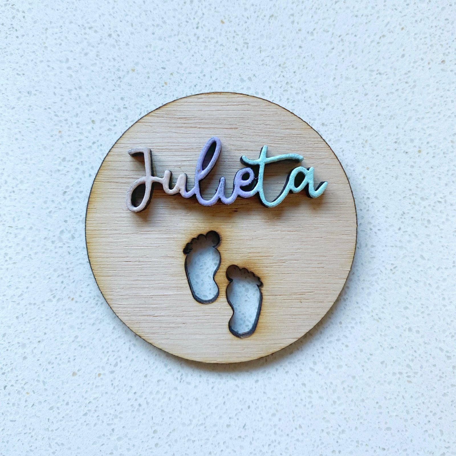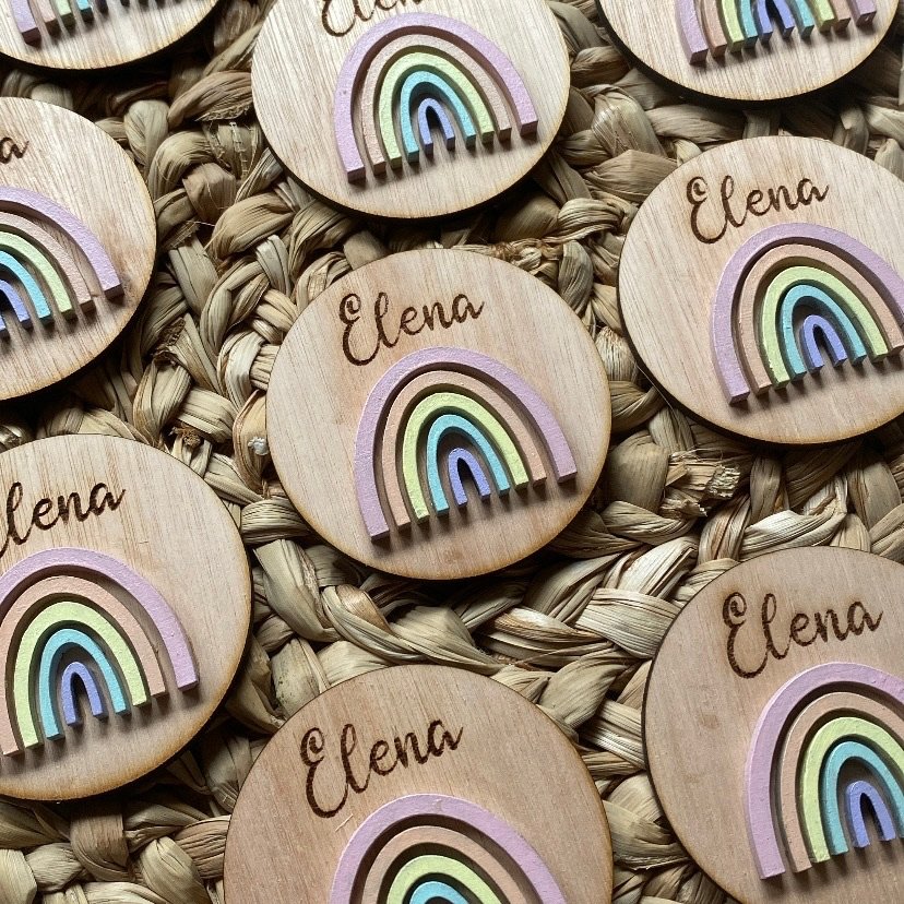 🤎 Imanes con diseño en relieve pintado, con nombre grabado adelante y frase atrás
